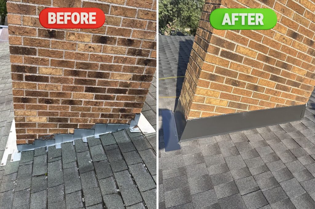 - New Chimney Flashing, Drip Edge & Gutter Apron to prevent leaks and improve drainage