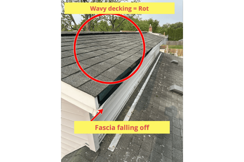 This St. Paul home needed major roof repairs; the fascia was falling off, the roof decking had become soft, wavy, and rotted in several areas. The eRoof team removed the old roof, rebuilt the damaged sections, and installed new decking and flashing for a watertight, long-lasting finish.